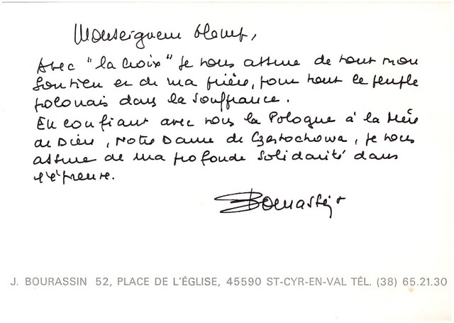 Kolekcja: Archiwa > Francuskie listy do księdza kardynała Józefa Glempa z okresu stanu wojennego > 36-10167-10287