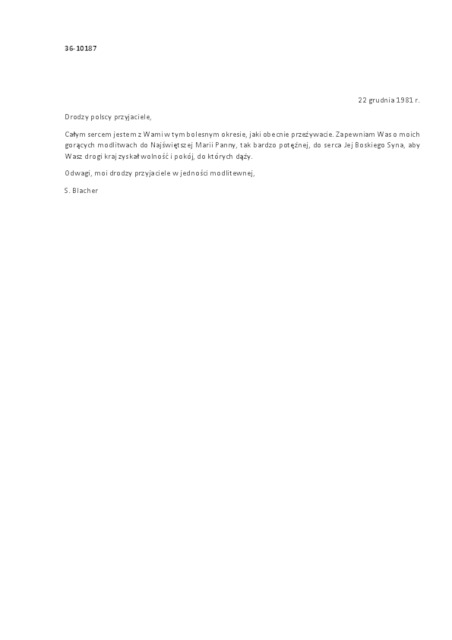 Kolekcja: Archiwa > Francuskie listy do księdza kardynała Józefa Glempa z okresu stanu wojennego > 36-10167-10287