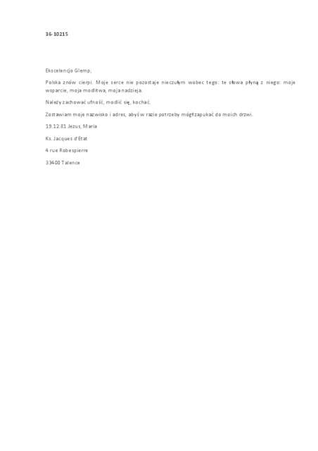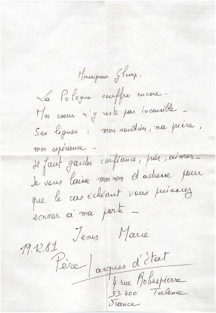 Kolekcja: Archiwa > Francuskie listy do księdza kardynała Józefa Glempa z okresu stanu wojennego > 36-10167-10287