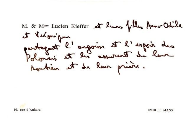 Kolekcja: Archiwa > Francuskie listy do księdza kardynała Józefa Glempa z okresu stanu wojennego > 36-10167-10287