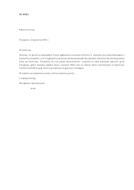 Kolekcja: | Archiwa > Francuskie listy do księdza kardynała Józefa Glempa z okresu stanu wojennego > 36-10167-10287 |