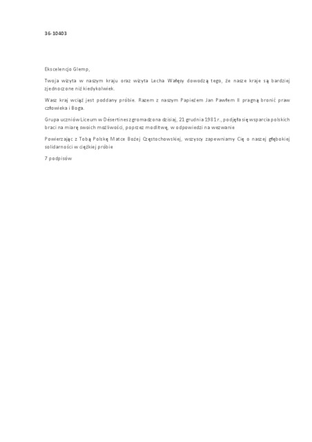 Kolekcja: | Archiwa > Francuskie listy do księdza kardynała Józefa Glempa z okresu stanu wojennego > 36-10288-10419 |