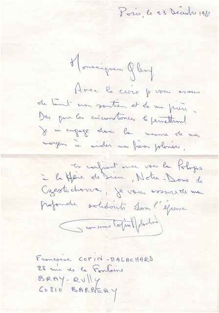 Kolekcja: | Archiwa > Francuskie listy do księdza kardynała Józefa Glempa z okresu stanu wojennego > 36-10420-10554 |