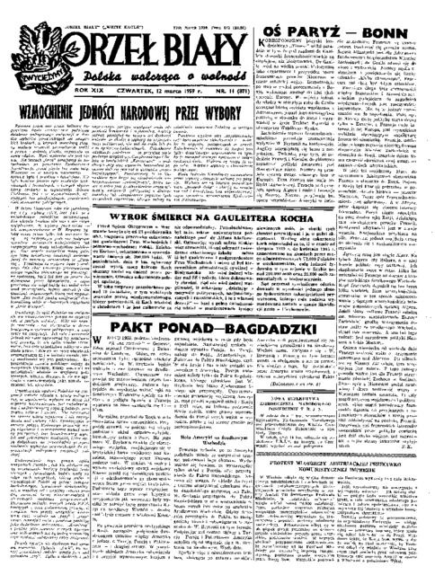 Orzeł Biały = (White Eagle): Polska walcząca o wolność, 1959 No. 11 (12 marca)