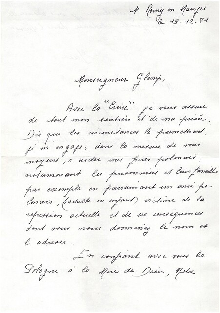 Kolekcja: Archiwa > Francuskie listy do księdza kardynała Józefa Glempa z okresu stanu wojennego > 36-10420-10554