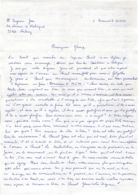 Kolekcja: | Archiwa > Francuskie listy do księdza kardynała Józefa Glempa z okresu stanu wojennego > 36-10420-10554 |