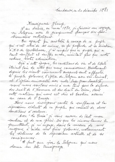 Kolekcja: | Archiwa > Francuskie listy do księdza kardynała Józefa Glempa z okresu stanu wojennego > 36-10420-10554 |