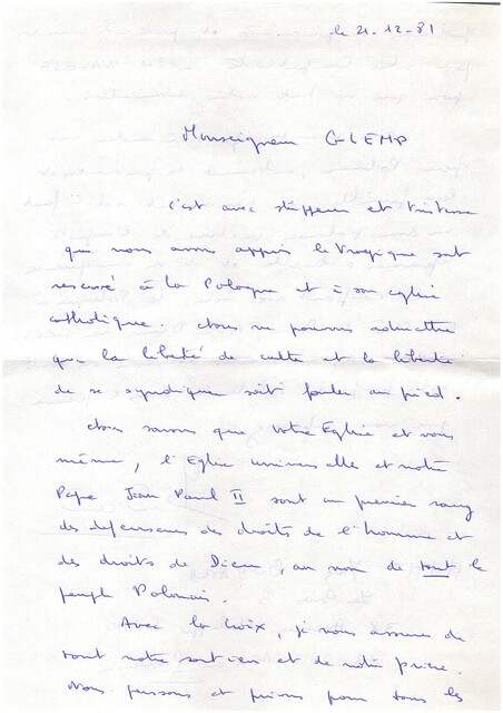 Kolekcja: | Archiwa > Francuskie listy do księdza kardynała Józefa Glempa z okresu stanu wojennego > 36-10420-10554 |