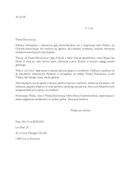Kolekcja: | Archiwa > Francuskie listy do księdza kardynała Józefa Glempa z okresu stanu wojennego > 36-10420-10554 |