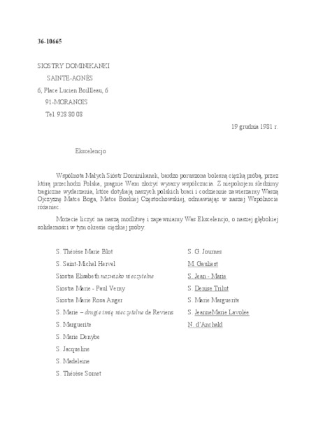 Kolekcja: | Archiwa > Francuskie listy do księdza kardynała Józefa Glempa z okresu stanu wojennego > 36-10659-10795 |