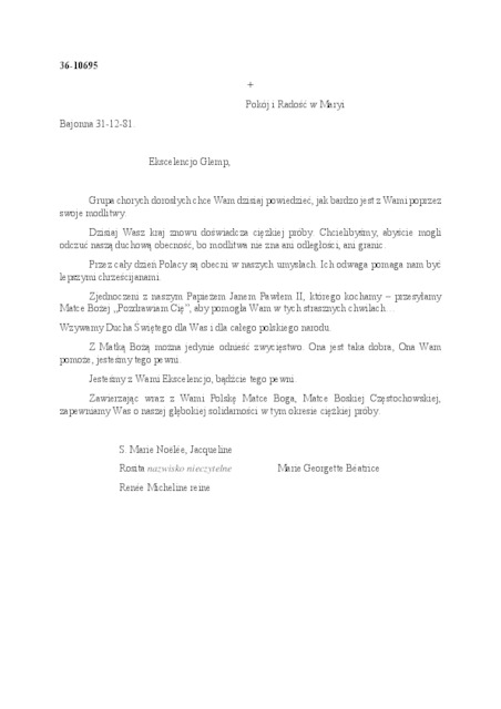 Kolekcja: | Archiwa > Francuskie listy do księdza kardynała Józefa Glempa z okresu stanu wojennego > 36-10659-10795 |