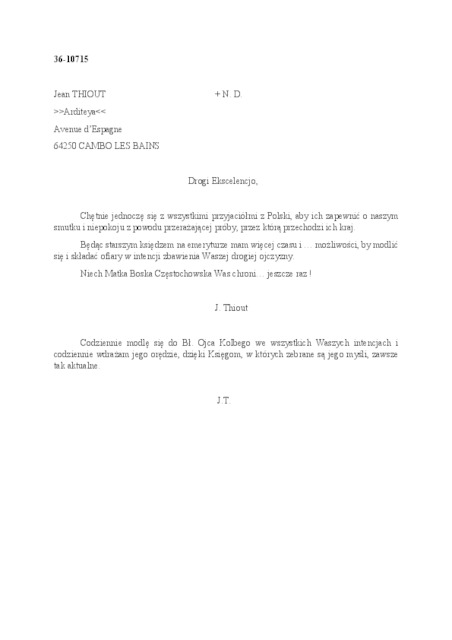 Kolekcja: Archiwa > Francuskie listy do księdza kardynała Józefa Glempa z okresu stanu wojennego > 36-10659-10795