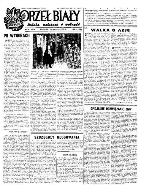 Orzeł Biały = (White Eagle): Polska walcząca o wolność, 1957 No. '4 (26 stycznia)