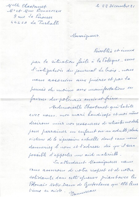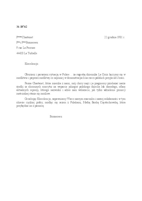 Kolekcja: | Archiwa > Francuskie listy do księdza kardynała Józefa Glempa z okresu stanu wojennego > 36-10659-10795 |