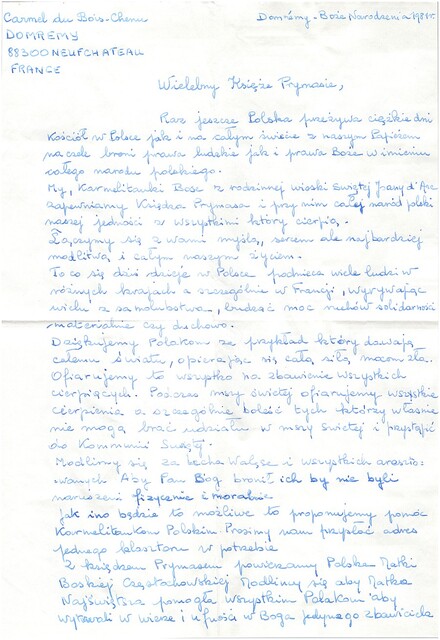 Kolekcja: | Archiwa > Francuskie listy do księdza kardynała Józefa Glempa z okresu stanu wojennego > 36-10659-10795 |