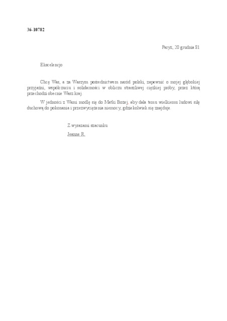 Kolekcja: | Archiwa > Francuskie listy do księdza kardynała Józefa Glempa z okresu stanu wojennego > 36-10659-10795 |
