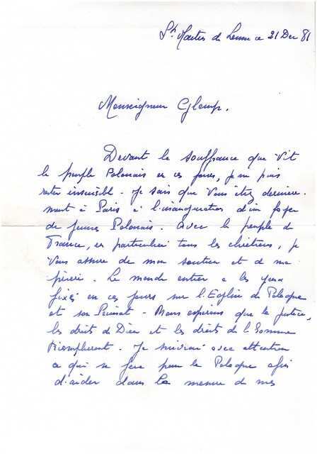 Kolekcja: Archiwa > Francuskie listy do księdza kardynała Józefa Glempa z okresu stanu wojennego > 36-10659-10795