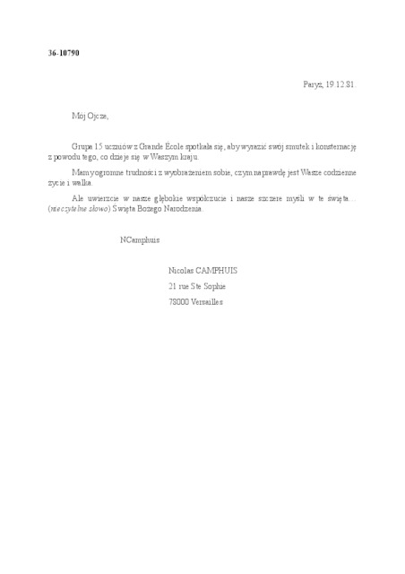 Kolekcja: | Archiwa > Francuskie listy do księdza kardynała Józefa Glempa z okresu stanu wojennego > 36-10659-10795 |