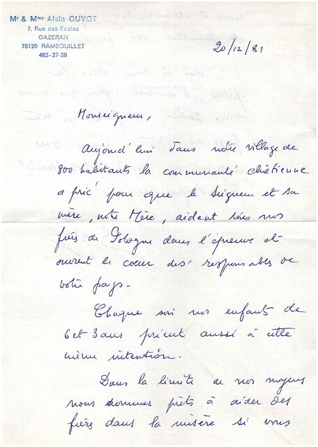 Kolekcja: | Archiwa > Francuskie listy do księdza kardynała Józefa Glempa z okresu stanu wojennego > 36-10659-10795 |