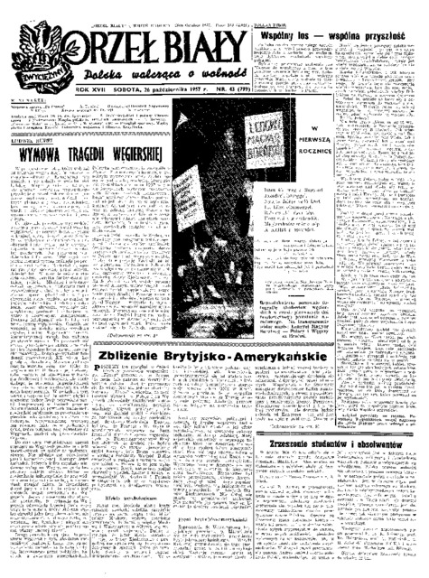 Orzeł Biały = (White Eagle): Polska walcząca o wolność, 1957 No. 43 (26 października)