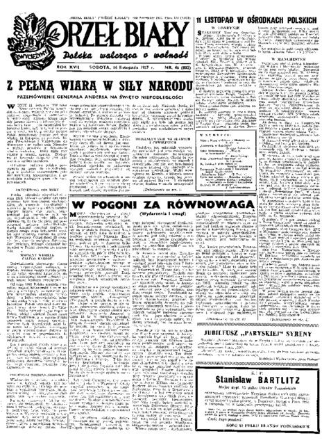 Orzeł Biały = (White Eagle): Polska walcząca o wolność, 1957 No. 46 (16 listopada)