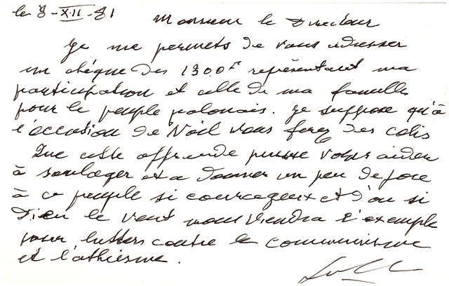 Kolekcja: Archiwa > Francuskie listy do księdza kardynała Józefa Glempa z okresu stanu wojennego > 36-10796-10905
