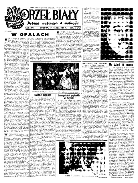 Orzeł Biały = (White Eagle): Polska walcząca o wolność, 1956 No. 11 (17 marca)
