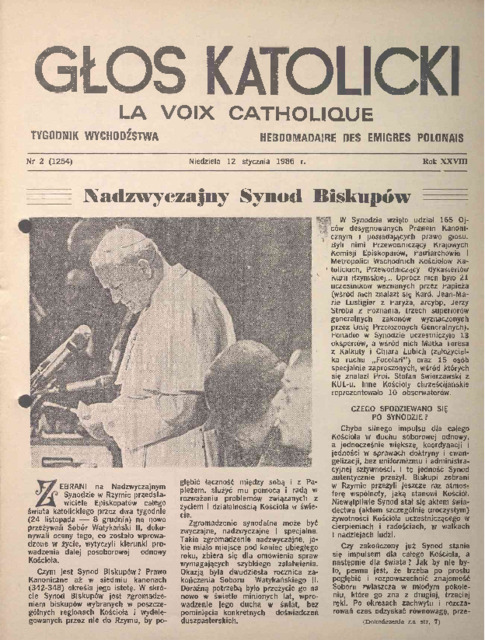 Głos Katolicki = La Voix Catholique. R. 28 : 'No. 2 (12 stycznia 1986)
