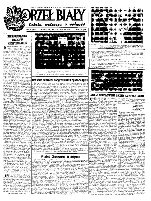 Orzeł Biały = (White Eagle): Polska walcząca o wolność, 1956 No. 38 (22 września)
