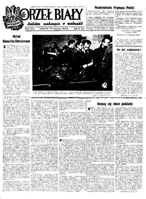 Orzeł Biały = (White Eagle): Polska walcząca o wolność, 1956 No. 47 (24 listopada)