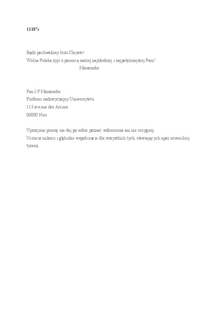 Kolekcja: | Archiwa > Francuskie listy do księdza kardynała Józefa Glempa z okresu stanu wojennego > 36-11171-11288 |