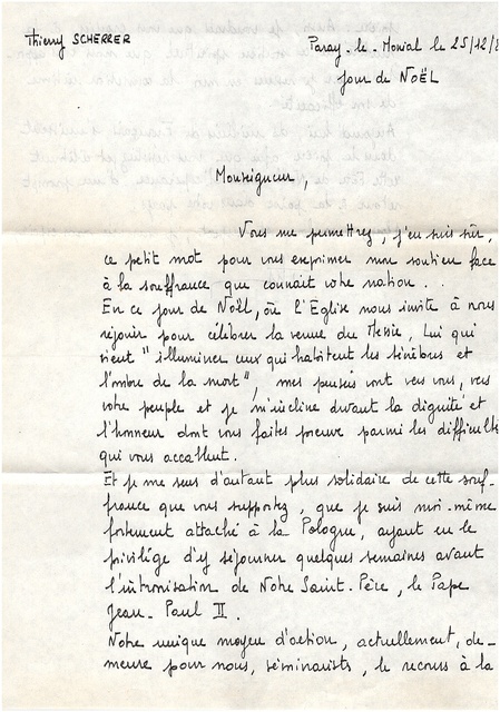 Kolekcja: Archiwa > Francuskie listy do księdza kardynała Józefa Glempa z okresu stanu wojennego > 36-11171-11288