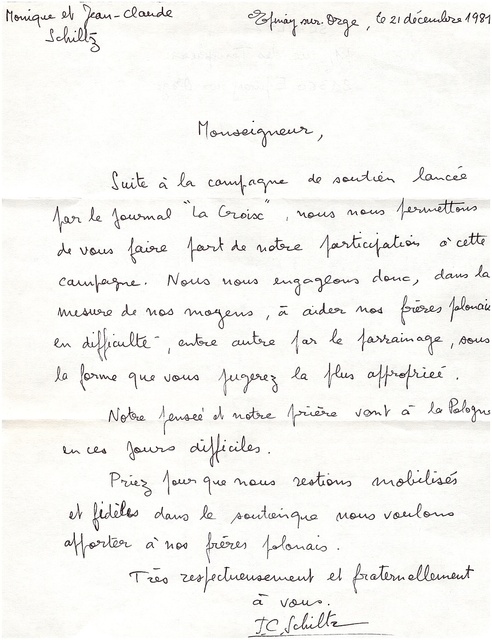 Kolekcja: | Archiwa > Francuskie listy do księdza kardynała Józefa Glempa z okresu stanu wojennego > 36-11171-11288 |