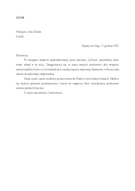 Kolekcja: | Archiwa > Francuskie listy do księdza kardynała Józefa Glempa z okresu stanu wojennego > 36-11171-11288 |