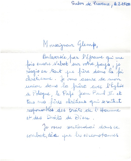 Kolekcja: | Archiwa > Francuskie listy do księdza kardynała Józefa Glempa z okresu stanu wojennego > 36-11171-11288 |
