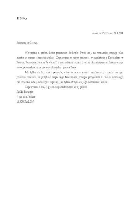 Kolekcja: | Archiwa > Francuskie listy do księdza kardynała Józefa Glempa z okresu stanu wojennego > 36-11171-11288 |