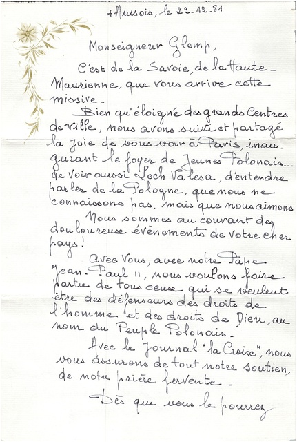 Kolekcja: | Archiwa > Francuskie listy do księdza kardynała Józefa Glempa z okresu stanu wojennego > 36-11171-11288 |