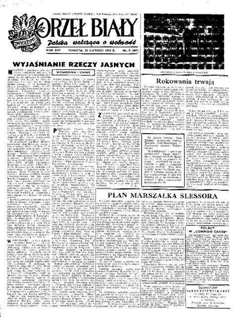 Orzeł Biały = (White Eagle): Polska walcząca o wolność, 1954 No. '8 (20 lutego)