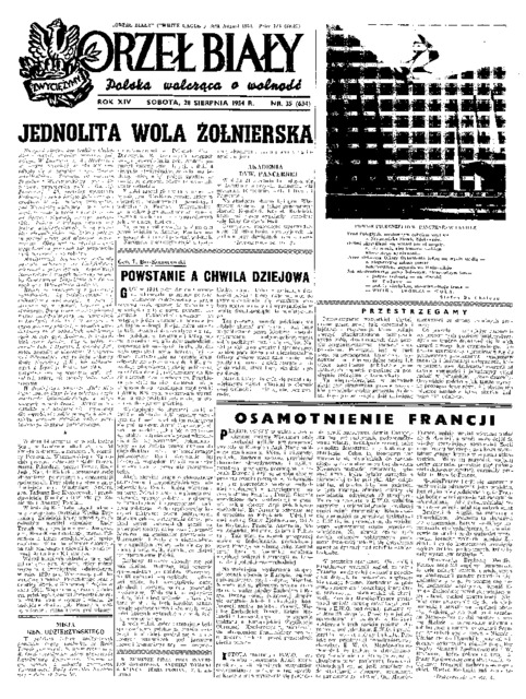 Orzeł Biały = (White Eagle): Polska walcząca o wolność, 1954 No. 35 (28 sierpnia)