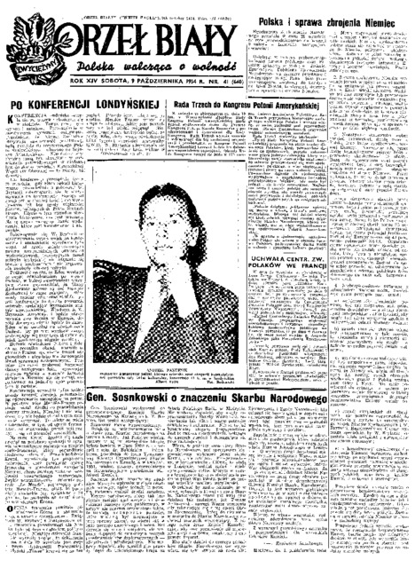Orzeł Biały = (White Eagle): Polska walcząca o wolność, 1954 No. 41 (9 października)