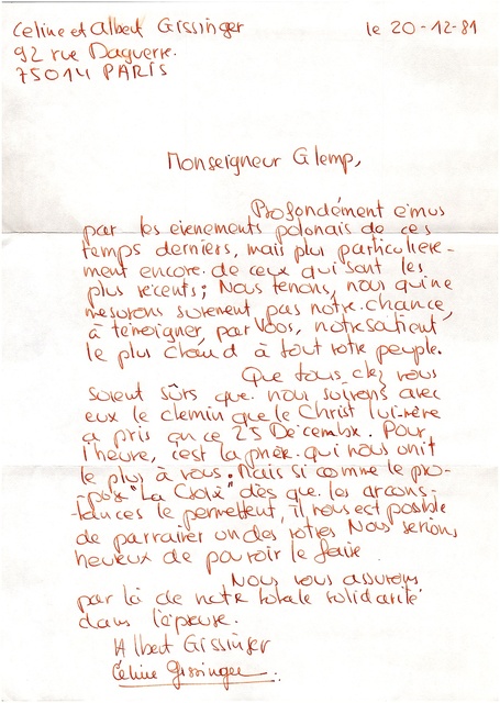 Kolekcja: Archiwa > Francuskie listy do księdza kardynała Józefa Glempa z okresu stanu wojennego > 36-11289-11411