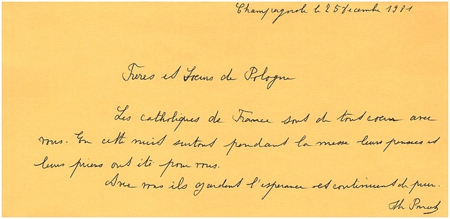 Kolekcja: | Archiwa > Francuskie listy do księdza kardynała Józefa Glempa z okresu stanu wojennego > 36-11289-11411 |