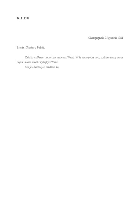 Kolekcja: | Archiwa > Francuskie listy do księdza kardynała Józefa Glempa z okresu stanu wojennego > 36-11289-11411 |
