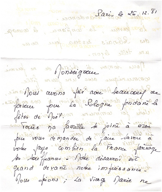 Kolekcja: | Archiwa > Francuskie listy do księdza kardynała Józefa Glempa z okresu stanu wojennego > 36-11289-11411 |