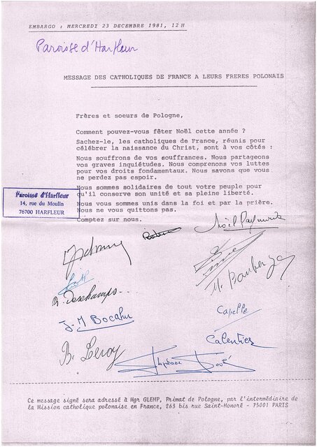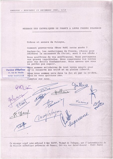 Kolekcja: | Archiwa > Francuskie listy do księdza kardynała Józefa Glempa z okresu stanu wojennego > 36-11412-11432 |