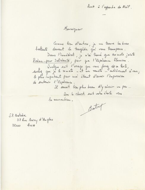 Kolekcja: | Archiwa > Francuskie listy do księdza kardynała Józefa Glempa z okresu stanu wojennego > 36-11458-11573 |