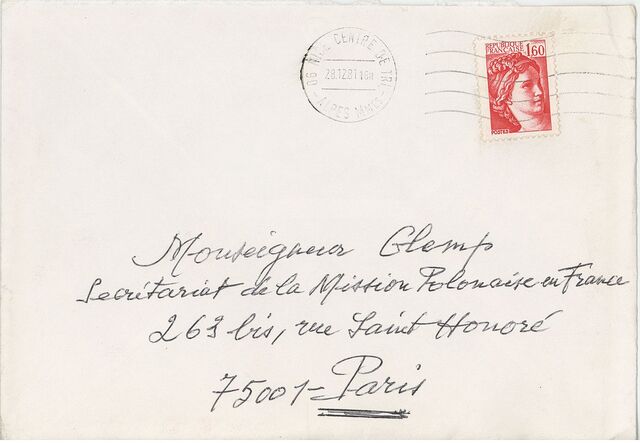 | Kolekcja: | Archiwa > Francuskie listy do księdza kardynała Józefa Glempa z okresu stanu wojennego > 36-11458-11573 |