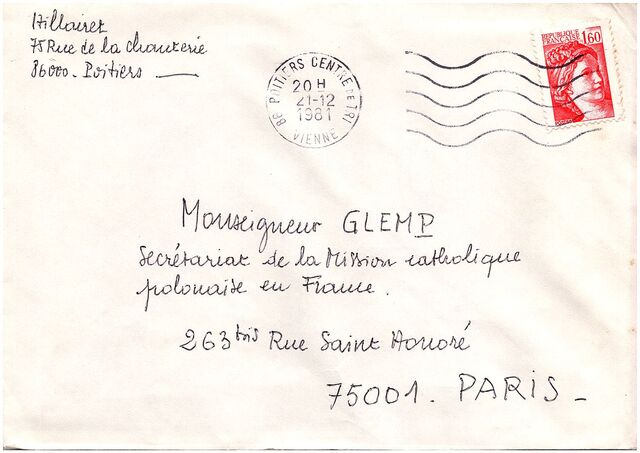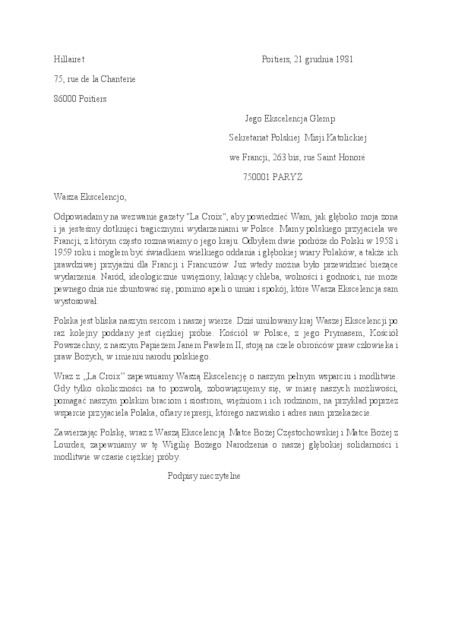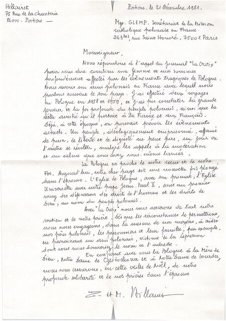Kolekcja: Archiwa > Francuskie listy do księdza kardynała Józefa Glempa z okresu stanu wojennego > 36-11458-11573