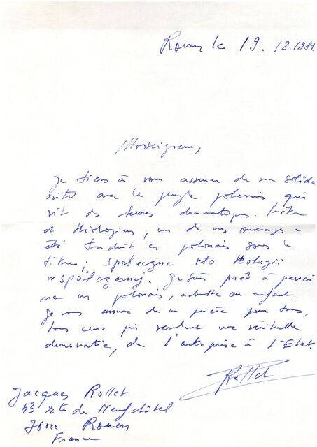 Kolekcja: Archiwa > Francuskie listy do księdza kardynała Józefa Glempa z okresu stanu wojennego > 36-11458-11573