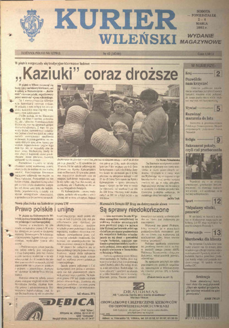 Kurier Wileński 2002 'No. 42 (14340) sobota-poniedziałek 2-4 marca